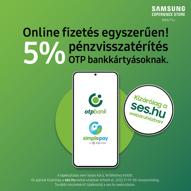 - Ha az online bankkártyás fizetési módot választod, az OTP jóvoltából 5% pénzvisszatérítésre lehetsz jogosult.
